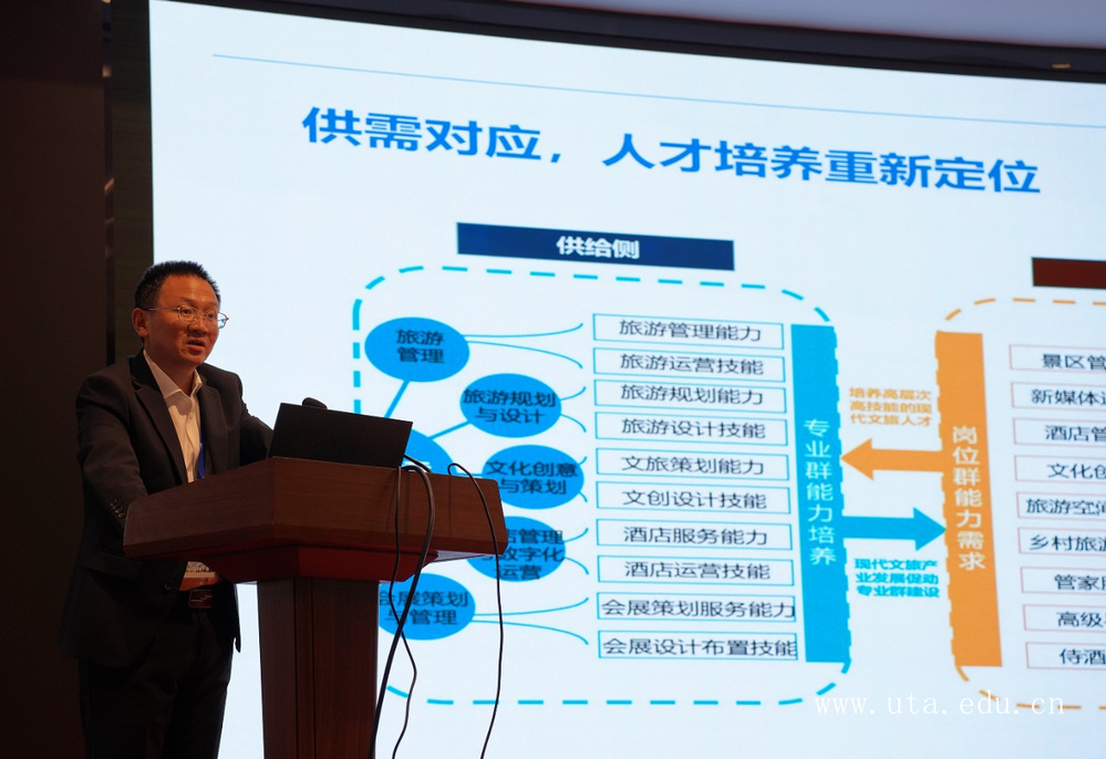 此次主题报告充分展示了安徽职业技术学院文旅专业群建设成果,在人才培养模式改革、师资队伍建设、教科研成果转化、实训基地建设、社会服务能力提升和国际交流机制创新等方面提出了全新理念。童登峰强调,文化与旅游学院始终坚持“文以化人,旅以载道”的育人理念,在人才培养方案修订过程中,探讨打造专业群矩阵,底层利用大数据、智能平台,中层以坚持真题真做,围绕综合案例,设置颗粒化的课程;高层课程坚持真题真做的基础上,定方向,真场景,明岗位,设任务,实绩效。获得了在场所有专家们的一致好评与认同。