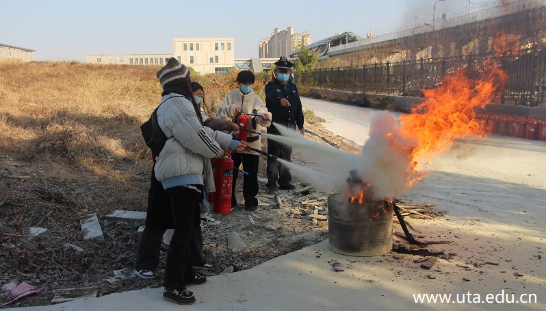 为提高师生消防安全意识,推动学院消防安全宣传和教育常态化,11月24日,现代商务学院联合保卫处开展消防灭火演练活动,保卫处教师徐朔、方元,学院团总支负责人丁润青及部分团学干部参加此次活动。
