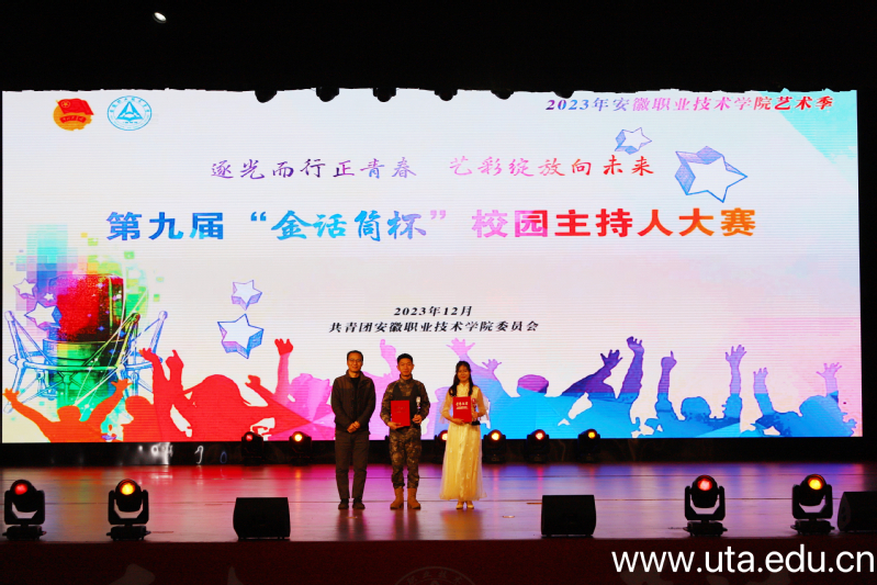 逐光而行正青春,艺彩绽放向未来。12月6日,团委成功举办2023年安徽职业技术学院艺术季系列活动之第九届“金话筒”杯校园主持人大赛。经过激烈角逐,文化与旅游学院胡俊怡获得金奖,计算机与信息技术学院石宇锋获得银奖,文化与旅游学院金含笑获得铜奖。