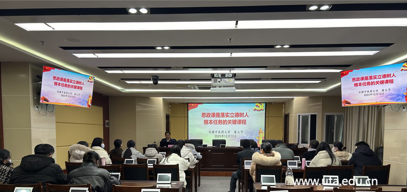 为进一步推动思政课改革创新,提高思政课老师理论素养,12月14日,马克思主义学院邀请安徽中医药大学教授董玉节作题为“思政课是落实立德树人根本任务的关键课程”学术讲座。报告会由马克思主义学院副院长徐叶主持,马克思主义学院党总支书记钱洁、副院长俞海燕、全体思政课教师及部分学生参加了此次活动。