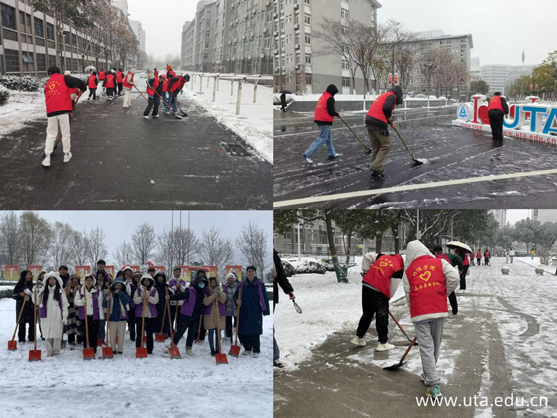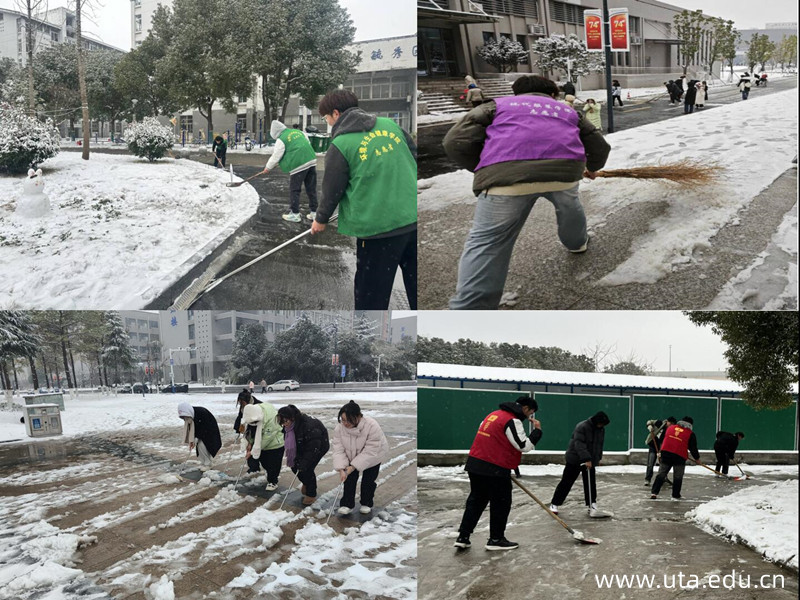 雪情就是命令,校院青年突击队、各级学生会组织迅速集结,第一时间投入到扫雪除冰工作中,针对重点路段、学生宿舍等学生上下课主干道路开展扫雪铲冰活动。大家顶风雪、冒严寒,充分运用除雪工具,对路面积雪进行清除,及时为广大师生清理出一条畅通路,努力做到路面无积雪、无残水、无结冰,让团旗在扫雪除冰一线高高飘扬,为冬日的校园增添了一抹暖色!