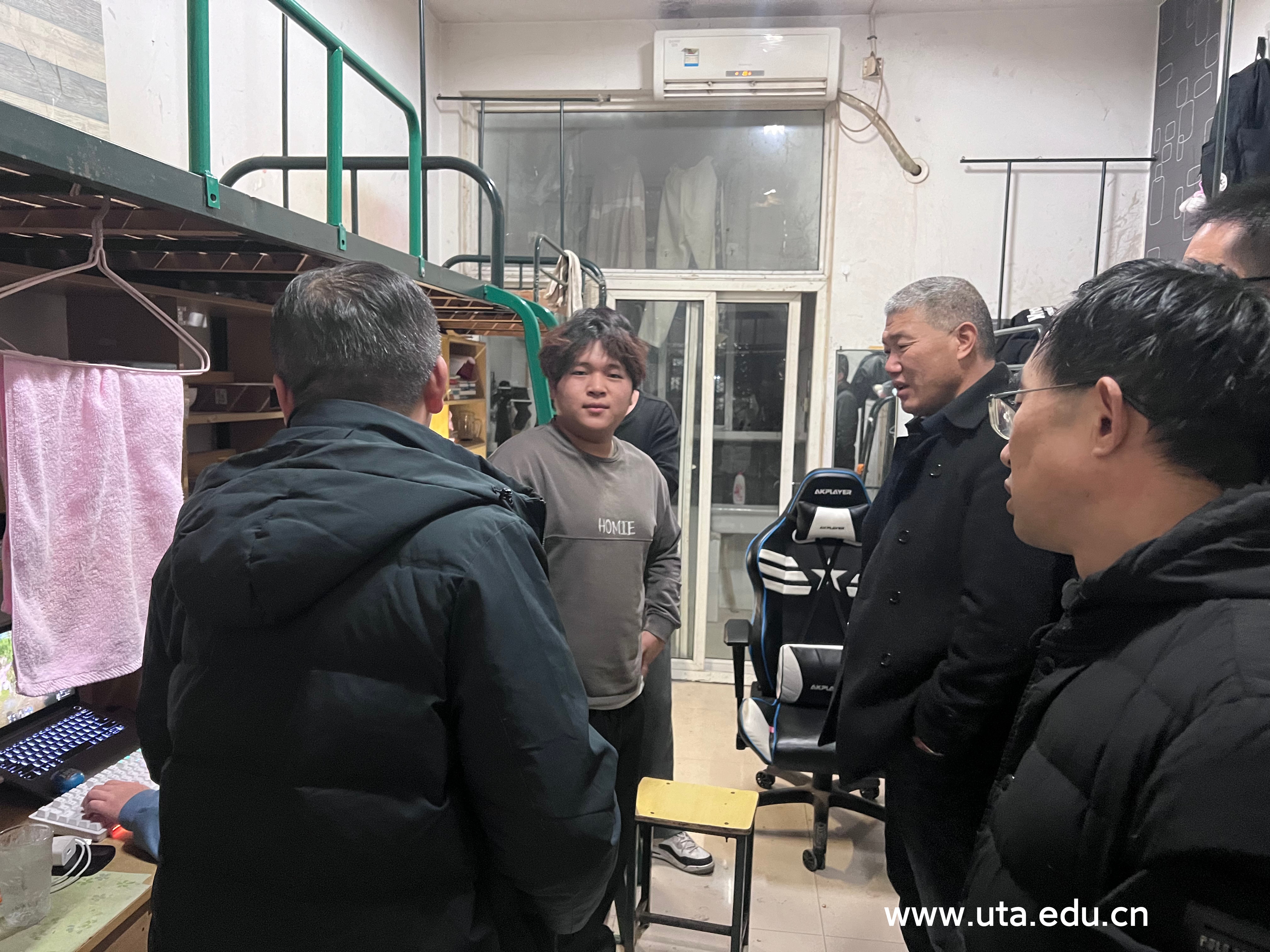 为提高学生寝室安全风险意识,强化宿舍安全管理,及时了解学生生活情况和思想动态,进一步做好学生服务管理及教育引导工作,12月19日,智能制造学院党总支副书记郝进平,副院长桂树国、常辉、张作胜一行深入学生宿舍,开展学生宿舍走访及卫生安全检查工作,了解学生在宿舍的学习、生活、心理等情况,为学生送去关心和问候。