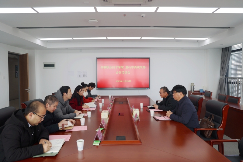12月28日,潜山市委统战部副部长,市工商联党组书记、常务副主席金飞一行来我院洽谈合作。教务处负责人,智能制造学院、计算机与信息技术学院、环境与生命健康学院党总支负责人参加座谈会。会议由就业与创新创业指导中心负责人王乌兰主持。
