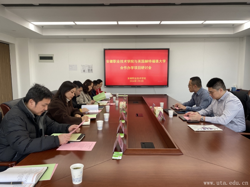 1月3日,英国赫特福德大学中国区首席代表王晶、中国南区和西南区总监鲁力来院研讨中外合作办学项目。艺术与创意学院、文化与旅游学院和外国语学院党政负责人参加研讨会。