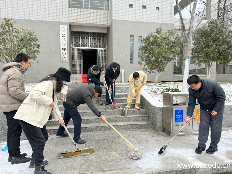 在大家的共同努力下,主要道路大部分冰和积雪已被清扫干净。此次扫雪活动,不仅方便了师生出行,减少了安全隐患,更体现了教师们的责任感,增强了干事创业的凝聚力,大家用实际行动迎接新的学期、开启新春的美景。(公共管理学院 周安琪)