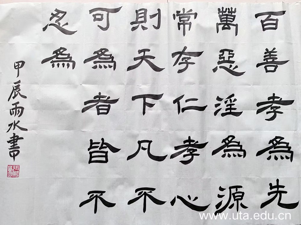 国风之本在家风,家风之本在孝道。寒假期间,文化与旅游学院开展“弘扬孝道 传承美德”书法征集活动,文秘2221班张鹏慧同学的书法作品荣获一等奖。学院通过此次书法征集活动不仅弘扬了中华传统孝道文化,也进一步增强了学生爱老敬亲的孝悌意识和感恩奉献的社会责任感。