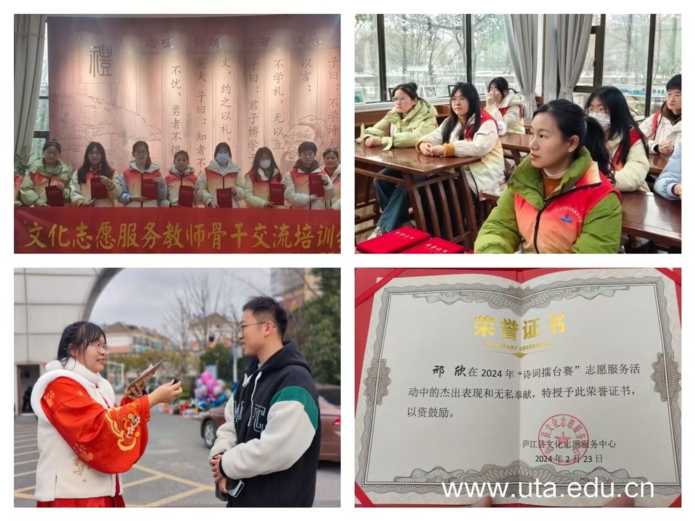 为引导学生树立崇尚劳动、尊重劳动、热爱劳动的观念,学院在寒假期间开展了“我的拿手年夜饭”劳动实践活动,鼓励广大学子与家人一起烹制年夜饭,传承中国传统文化,体验浓浓年味儿;倡导广大团员青年学生积极参与“返家乡”社会实践活动,结合自身特长,主动向村、社区报到,通过多渠道力所能及地参与基层治理日常工作。活动中,广大学子积极响应号召,深入乡村、街道、社区,结合自身特长开展了形式多样的社会实践和志愿服务活动。其中,旅游2323班邢欣同学积极投身家乡“诗韵新春 阅读之美”阅读推广系列活动,并收获来自庐江县文化志愿服务中心颁发的荣誉聘书。通过“返家乡”社会实践活动,广大学子在实践中立大志、明大德、成大才、担大任,为社会发展注入青春动能,点燃青春亮丽底色。