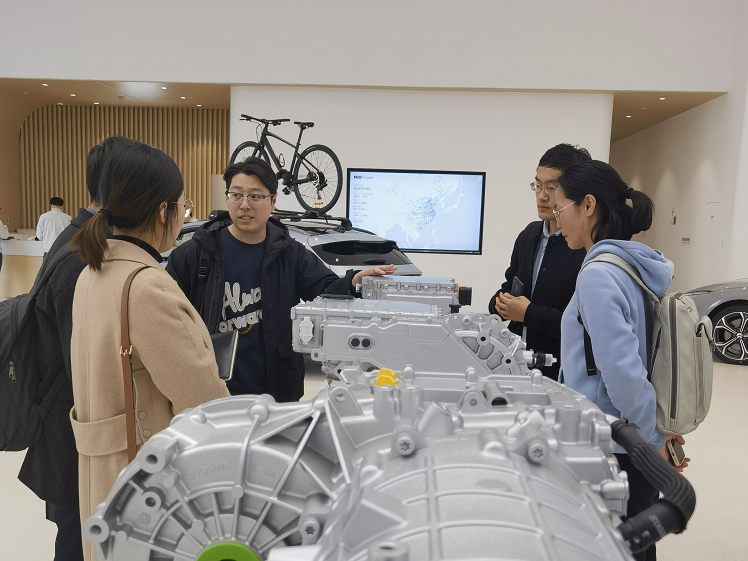 在蔚来汽车交付中心,周宁一行详细了解蔚来汽车智能驾驶先进技术,并与蔚来汽车校企合作负责人开展座谈。双方围绕蔚来班的建设成果、蔚来汽车测试、制造岗位的人才需求展开交流,并就进一步深化合作达成初步共识。