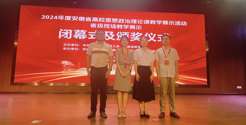 本网讯(马克思主义学院)为深入学习贯彻习近平总书记在学校思想政治理论课教师座谈会上的重要讲话精神,切实提升全省高校思政课教师教育教学能力水平,8月7日至8日,由中共安徽省委教育工委、安徽省教育厅主办,安徽中医药大学承办的2024年度全省高校思政课教学展示活动省级现场教学展示在合肥成功举办。历经初赛网评阶段,我院四名老师全部入围现场决赛,经过激烈角逐,俞海燕荣获“习近平新时代中国特色社会主义思想概论”课程组一等奖、郑娟荣获“思想道德与法治”课程组决赛一等奖,丁琦荣获“形势与政策”课程组二等奖、李祥祥荣获“毛泽东思想和中国特色社会主义理论体系概论”课程组二等奖。