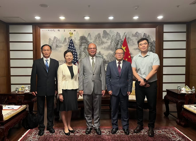 中国驻美国纽约总领馆余有根教育参赞亲切接见盛鹏院长一行