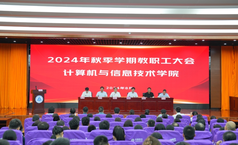 本网讯(计算机与信息技术学院)8月30日,计算机与信息技术学院召开2024年秋季新学期全体教职工大会。院党委委员、副院长张智清出席会议,党委办公室负责同志,计算机与信息技术学院党政领导班子、全体教职员工参加会议。