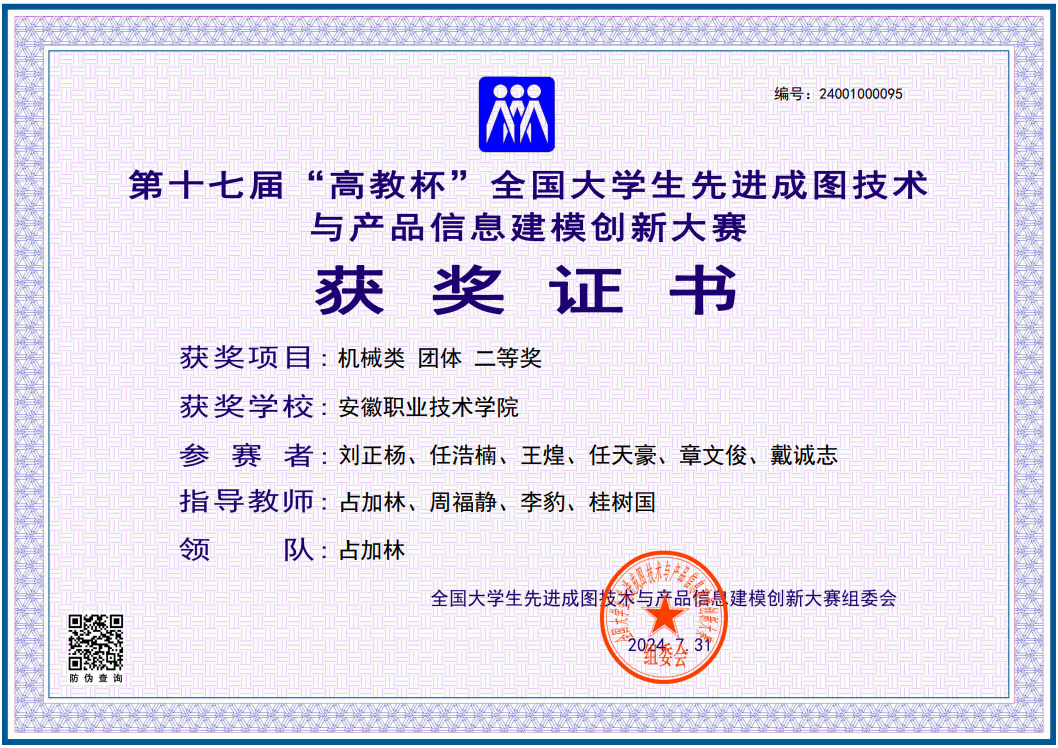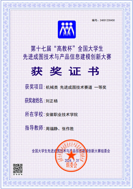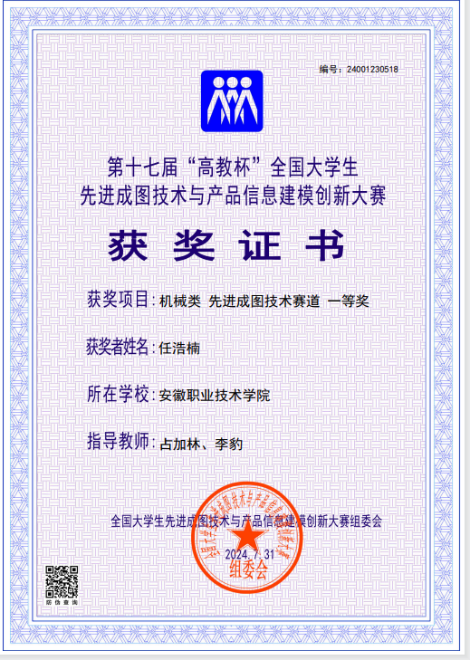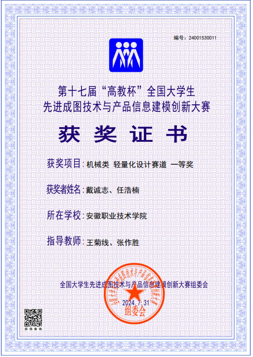 本网讯(智能制造学院)近日,第十七届“高教杯”全国大学生先进成图技术与产品信息建模创新大赛全国总决赛在贵州大学落下帷幕,全国27个省市自治区设置了分赛场。经过校赛、省赛的层层选拔,我院智能制造学院选派九名成绩优异的同学参加第十七届成图大赛全国总决赛。面对赛场上的激烈竞争,我院学子机设2223班戴诚志、数字化2322班任浩楠凭借过硬的专业技能和良好的临场发挥,斩获轻量化设计赛道团体一等奖;数字化2321班刘正扬、数字化2322班任浩楠分别荣获个人赛项一等奖;其他赛项还荣获二等奖5项的好成绩。