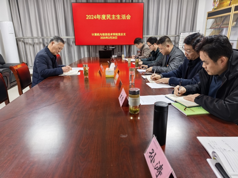 2月28日上午,计算机与信息技术学院党总支在至廉楼512会议室召开2024年度民主生活会,纪委副书记、纪委办主任汪武到会指导,学院党总支班子成员、组织员参加会议。会议由党总支书记周玉强主持。
