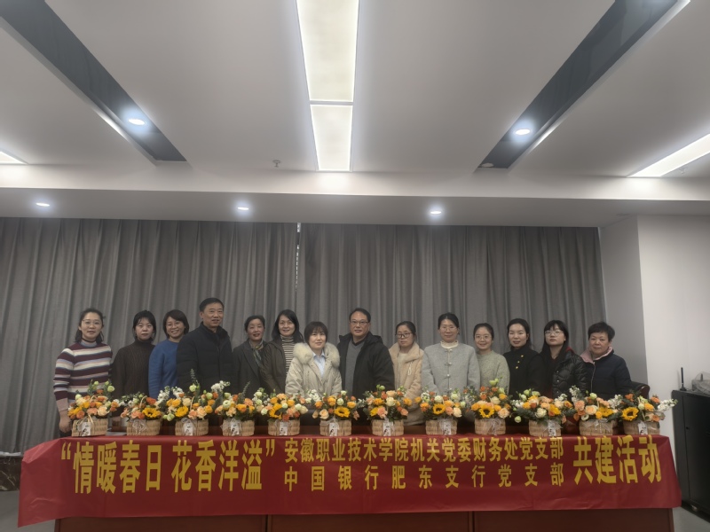 在第115个国际劳动妇女节来临之际,为发挥党建引领带动作用,促进党建工作与妇建工作共同发展,持续传递新时代女性正能量,3月5日下午,财务处党支部联合中国银行肥东支行党支部组织全体女职工开展了“情暖春日 花香洋溢”插花活动。两支部共14名党员参加。