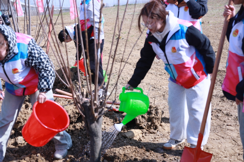 作为新时代青年,参与义务植树既是履行公民责任的生动实践,更是深化劳动教育的重要载体。通过现场实践、劳动体验等形式,引导学生深刻理解“人与自然生命共同体”的内涵。师生在培土浇水的过程中,不仅掌握了苗木养护知识,更在劳动中锤炼了吃苦精神,强化了生态环保意识。春风掠过新翻的泥土,身着安职青团服装的学子与培植树苗构成生机盎然的生态图谱。今后团委将持续深化服务地方建设,引导学子将专业所学转化为守护绿水青山的生态实践,将技能所长融入产业升级的创新浪潮,为建设绿色校园、美丽合肥书写安职青春力量。(文/王朝峰 谷馨悦 图/卞文明)