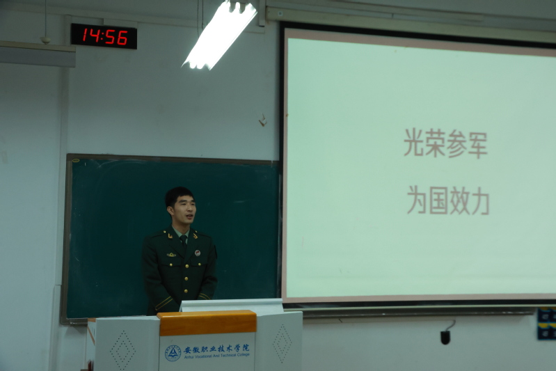 在宣讲现场,退役大学生士兵姜志强结合自身在军营中的亲身经历,生动讲述了从校园走向军营的蜕变过程,话语中满是感慨:“参军,不仅是个人无上的荣耀,更是整个家庭的骄傲,是为社会增光添彩。”姜志强同学通过PPT,详细解读大学生入伍优惠政策,包括学业支持、经济补助、就业保障等内容。