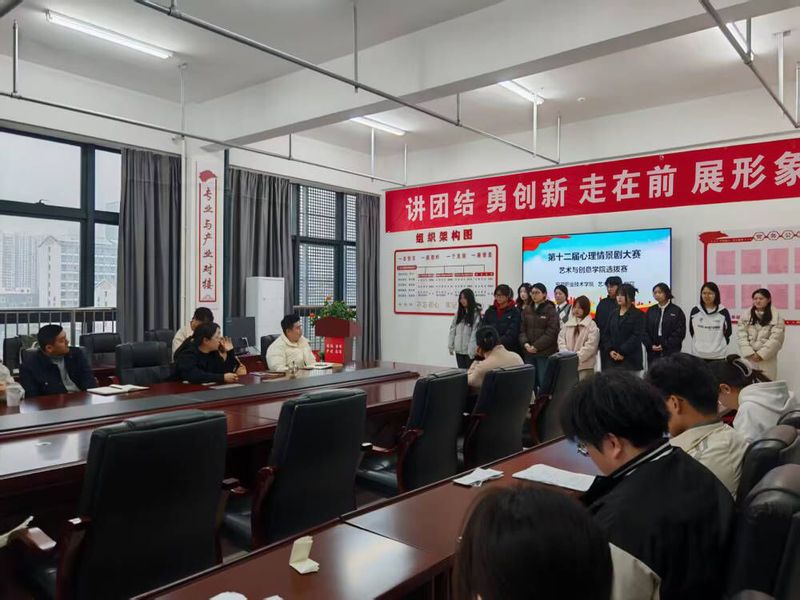 为提高大学生心理健康素养,加强校园文化建设,营造和谐健康的校园氛围,以美育浸润心灵,艺术与创意学院在至明楼五楼502会议室举办学校第12届心理情景剧大赛学院选拔赛,学院党总支书记李仿民、全体辅导员及参演学生共同参与活动。