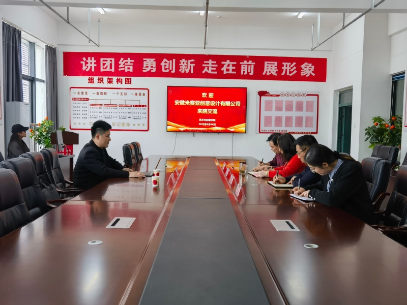 3月24日,安徽米赛亚创意设计有限公司总经理李亚飞一行来校参加合作洽谈会,双方就动漫专业人才培养、校企合作等议题展开深入交流。艺术与创意学院党政负责人李仿民、张文徽,教研室主任方方、辅导员贾佳老师参会,会议由张文徽主持。