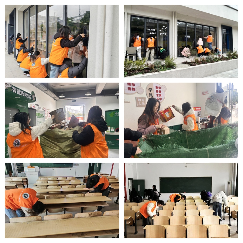 学院将学习成果转化为实干力量,组织团员青年深入校园开展“学雷锋·见行动”志愿服务。中邮驿站内,志愿者们分拣快递、整理货架,为师生提供高效取件服务;教学楼里,他们清洁桌椅、清扫教室,还原窗明几净的学习环境;一站式学生社区中,擦拭玻璃、环境美化等行动如火如荼。据统计,全院累计参与志愿服务500余人次,以实际行动书写新时代雷锋故事。
