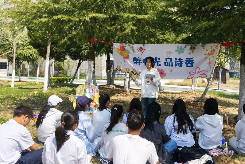 春水初生,春林初盛,三月的校园草木蔓发,诗香氤氲。3月26日下午,文化与旅游学院方寸读书会第七期活动“醉春光·品诗香”在校园芳草如茵的草坪上浪漫启幕。30余名学子以天为幕、以地为席,在击鼓传花的欢声笑语中吟咏经典,共赴一场诗意与春光的邂逅。