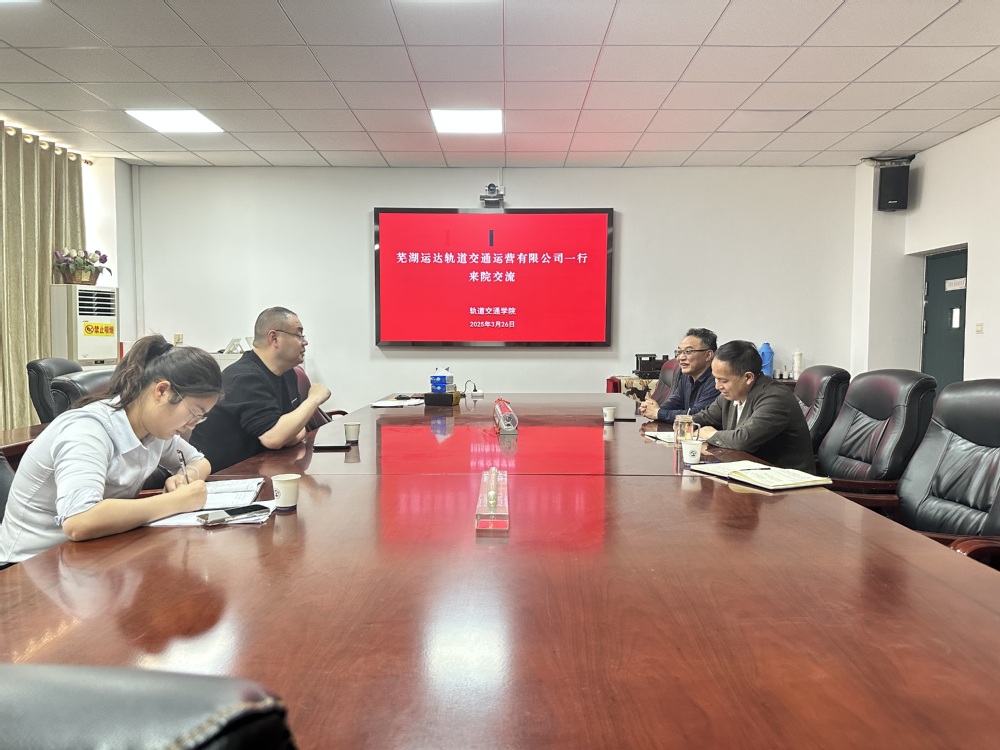 3月26日下午,芜湖市运达轨道交通建设运营有限公司综管部部长刘元元一行莅临轨道交通学院,双方在会议室举行了校企合作座谈会。学校就业与创业指导中心副主任王平、轨道交通学院党总支副书记白花蕊、副院长刘道前参加会议,共同商讨校企合作、产教融合的新路径。