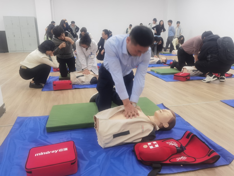 培训首先由校医院谭敏医师进行理论讲解。心肺复苏作为紧急情况下挽救生命的关键措施,培训通过图文并茂的方式重点讲解了心肺复苏的基本步骤,介绍了如何正确操作AED设备进行电击复苏,最后进入海姆立克法的学习环节。海姆立克法是一种用于清除气道阻塞、挽救窒息患者生命的急救技术。在讲解中,谭敏演示了如何通过这一方法有效解救被卡住异物的患者。理论讲解之后,师生们纷纷参与到实际操作环节,亲自动手演练心肺复苏、AED使用及海姆立克法,熟练掌握了急救技能。