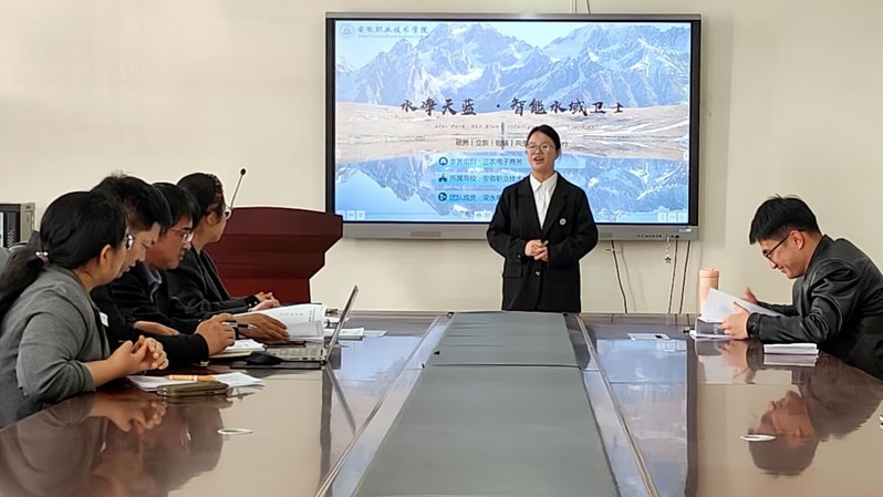本次院赛以“智启新程,创启未来”为主题,设团队演讲和评委提问两个环节,参赛项目涵盖水域治理、老年康养等领域,团队立足社会需求,聚焦行业痛点,展现了项目差异化优势,体现了多学科交叉融合的创新特色。