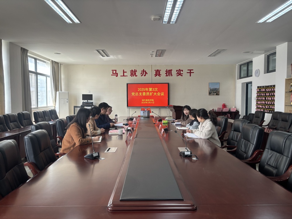 3月31日上午,现代商务学院召开2025年第3次党总支委员(扩大)会议,传达学习习近平总书记关于加强党的作风建设的重要论述,认真学习贯彻中央党的建设工作领导小组会议和中共中央办公厅印发的《关于在全党开展深入贯彻中央八项规定精神学习教育的通知》精神,贯彻落实校党委工作要求,动员部署学习教育工作。党总支书记高立克主持会议并讲话,党总支委员及有关部门负责人同志参加了此次会议。