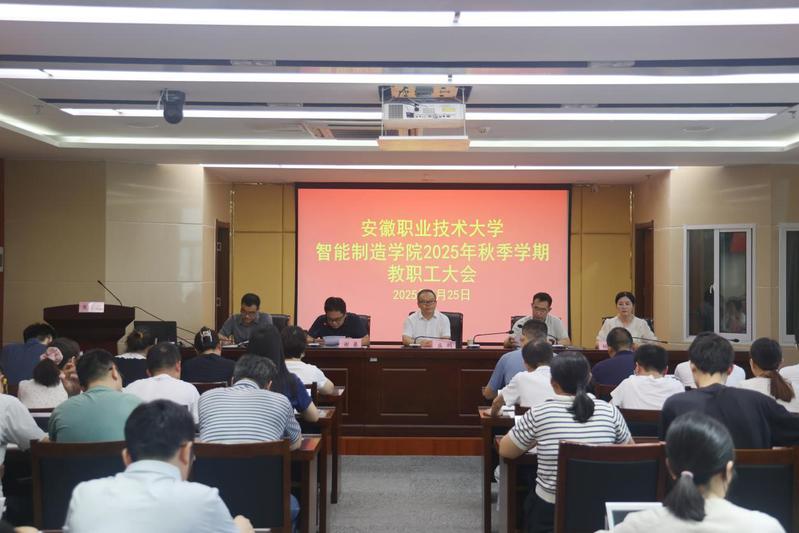 本网讯(智能制造学院)新起点承载新使命,新征程呼唤新作为。8月25日,智能制造学院召开2025年秋季新学期教职工大会。校领导盛鹏出席会议,学院领导班子成员及全体教职工参会,会议由学院党总支负责人常辉主持。