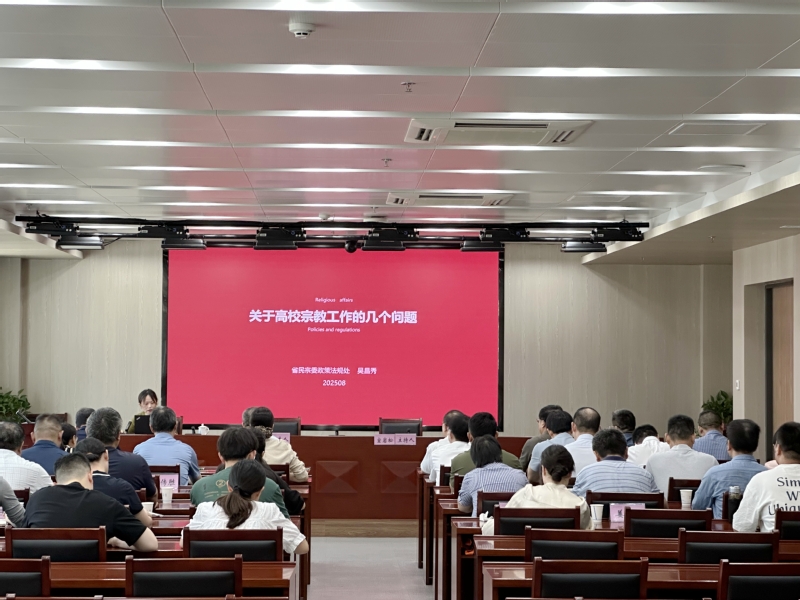 本网讯(党委宣传部)8月29日,学校召开2025年第8次党委理论学习中心组学习会,专题研讨学校统一战线工作。会议学习了《习近平总书记关于做好新时代党的统一战线工作的重要思想学习读本》和相关文件,还听取了省民宗委政策法规处处长吴昌秀以“如何做好学校民族宗教工作”为主题的专题辅导报告。会议采取“重点发言+随机点名”学习交流机制,校领导张智清、陈晓春作了重点交流发言,随机抽取2名同志作了交流发言。党委理论学习中心组成员,办公室、组织部、宣传部、纪委办公室、人事处、学生处、安全管理处负责人,智能制造学院、轨道交通学院党总支负责人列席。