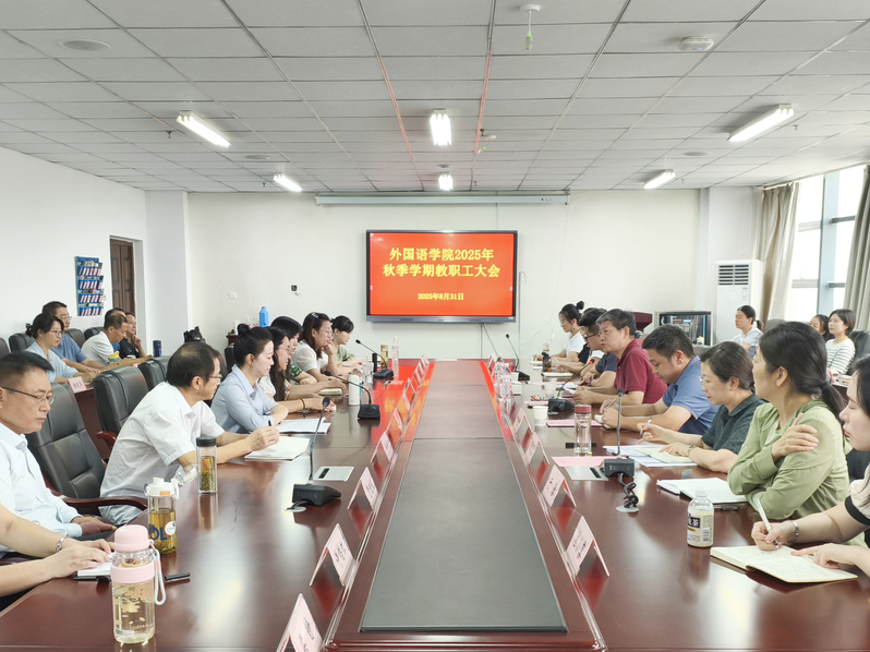 8月31日,外国语学院召开2025年秋季学期教职工大会。校领导杨林国出席会议,学院党政负责人及全体教职工参加会议,会议由学院党总支书记何晓皖主持。