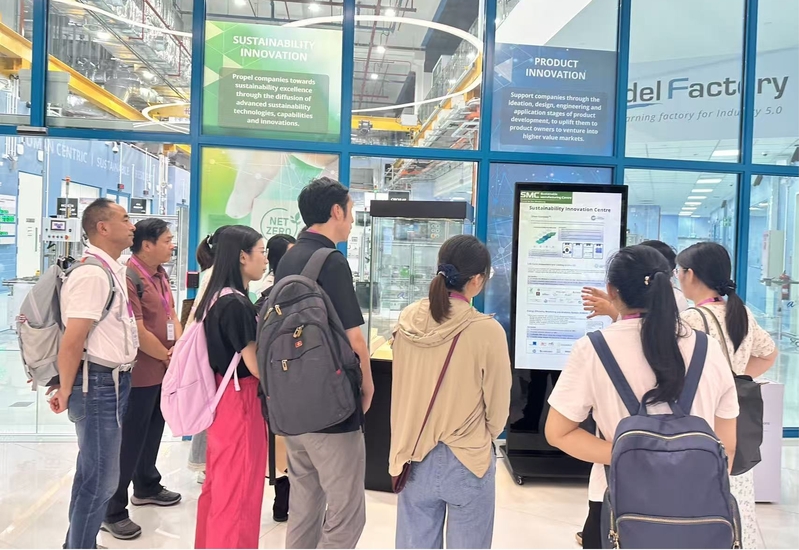 考察调研期间,研修团队先后深入南洋理工大学、新加坡国立大学及多家顶尖科研与产业机构,以实地观摩、现场交流的方式,直观感受新加坡教育与科研创新的前沿样态。在高校考察中,团队走进南洋理工大学标志性的Hive“小笼包”学习中心、if 产学研创新工厂与南洋数智研究院,以及新加坡国立大学校园,近距离观察新加坡高校开放式学习空间的设计巧思与数字化教学设施的完备配置,深刻体会其以学生为中心的环境构建理念;同时现场观摩智能制造领域尖端技术演示,直观感受技术与教育教学的深度融合。此外,团队还前往 A-STAR 新加坡制造技术学院、新加坡国家科学院洁净科技园等机构,通过听取前沿技术发展报告、观摩智能制造一线生产场景,系统了解新加坡在可持续发展领域的实践路径,以及在深化校企合作、推动科教融汇方面的成熟机制与先进经验,为后续学校推进产教融合、人工智能赋能教学提供了鲜活参考。