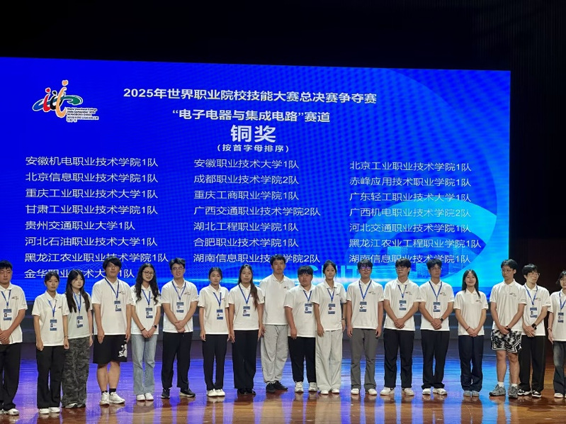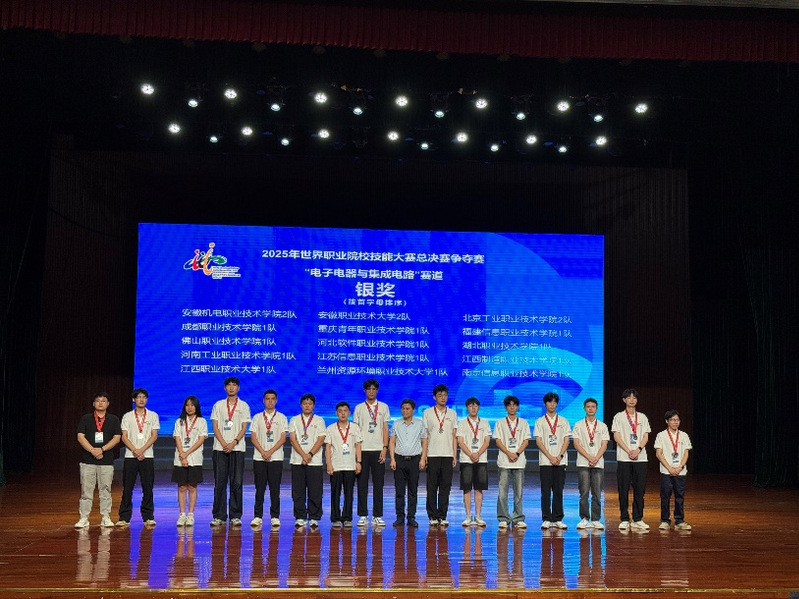 本网讯(计算机与信息技术学院)8月26日至31日,2025年世界职业院校技能大赛总决赛争夺赛电子电器与集成电路赛道在深圳信息职业技术大学举行。此次大赛由教育部牵头,联合多部门举办,以“技炫青春 能创未来”为主题,聚焦“精湛技能、青春风采、美好生活”,吸引全国154支队伍参赛,竞争异常激烈。我校计算机与信息技术学院两支参赛团队凭借精湛技能,斩获银奖、铜奖各一项,彰显学校职业教育实力与人才培养成效。
