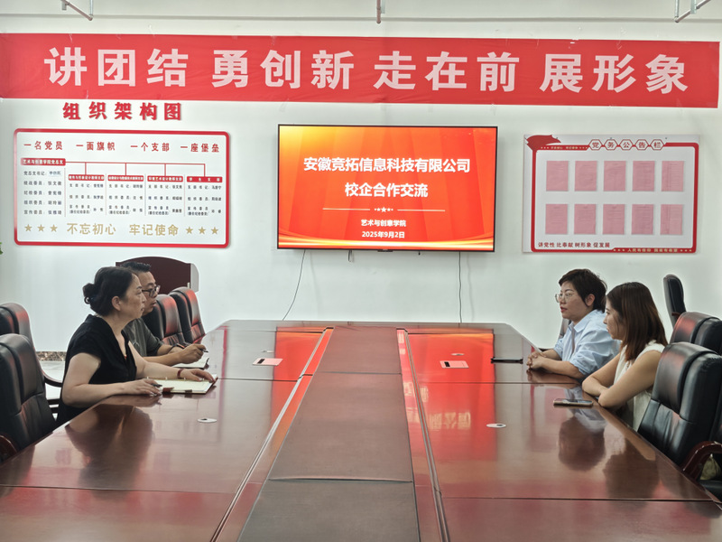9月2日,安徽芯之辰教育科技有限公司、安徽竞拓信息科技有限公司一行到访艺术与创意学院,围绕校企合作事宜开展深度交流。艺术与创意学院院长张文徽、副院长曾宪锋及各教研室骨干教师代表出席会议,双方就资源共享、人才共育、产业协同等议题展开研讨,为后续合作奠定坚实基础。