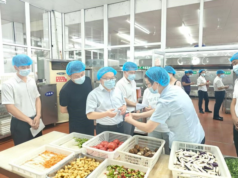 会后,盛鹏一行对东园、西园学生食堂开展现场检查,重点查看后厨卫生、食材储存、食材加工等环节,详细询问了食品留样、餐具消毒等流程执行情况,叮嘱工作人员“要以父母之心守护学生饮食安全”。 (文/薛雯雯 图/闵际军)