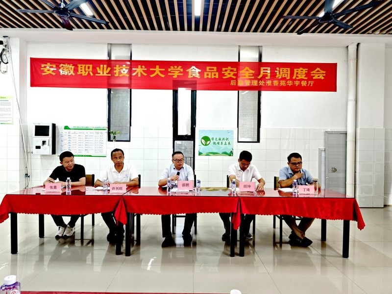 会上,与会人员集中学习了《安徽省教育厅关于以案为鉴进一步加强校园食品安全管理工作的通知》《安徽省市场监督管理局等五部门<关于常态化开展春秋季学期校园食品安全和膳食经费联合检查的通知>》《安徽省教育厅等八部门<关于进一步规范和加强高等学校学生食堂管理工作的通知>》等文件。胡坤就“相关文件的学习培训和贯彻落实”“新学期供餐保障”“学校食堂大宗食材采购验收管理”“智慧信息化平台使用 ”“日常校园食品安全各项工作”等五项校园食品安全工作做了重点部署。