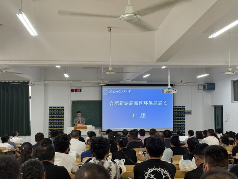 为增强新生家长对生态环境工程技术专业的了解,9月6日下午,环境与生命健康学院在博雅203举办了2025级生态环境工程技术专业新生家长见面会。出席此次见面会的有合肥新站高新区环保局局长叶超、安徽科创中光科技股份有限公司董事长汪思保、环境与生命健康学院党政负责人、环保教研室全体教师、生态环境工程技术专业辅导员和生态环境工程技术专业新生家长。