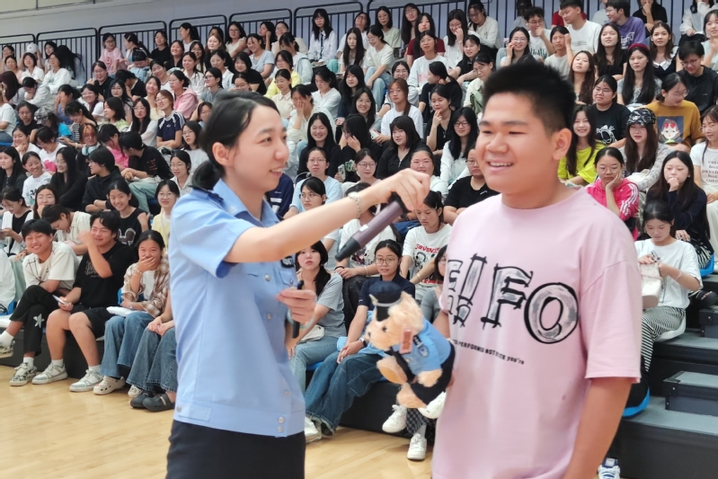 为进一步做好新学期反诈宣传教育工作,切实提升学生识骗防诈能力,9月10日,安全管理处成功举办“开学反诈第一课”宣讲活动,邀请高教基地派出所陈晗警官作宣讲。相关二级学院党政负责人、辅导员和2025级学生近3000人参加了活动。