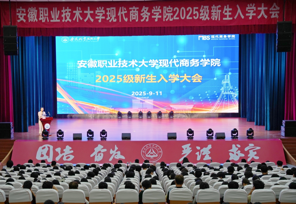 9月11日下午,现代商务学院在至立会堂举行2025级新生入学大会。校领导、学院党政负责人、师生代表及全体2025级新生共同参加了此次大会。会议由团总支书记丁润青主持。
