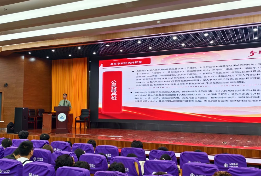 活动中,单武龙与杨静详细介绍了大学生征兵政策、入伍流程、优待政策及成长发展路径,为新生提供了清晰实用的政策指引。他们以九三大阅兵为引,强调国防建设与国家强盛的内在联系,号召青年学子将个人理想融入强国兴军的时代洪流。