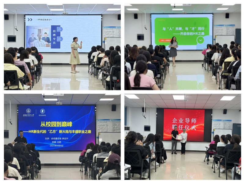 9月9日上午,在“行业前沿”主题活动中,来自祥源物业服务有限公司和合肥优曼人力资源咨询有限公司的企业专家章亭和李志宁分别从人力资源管理和人力资源服务两个维度,通过真实案例生动展示了人力资源工作的价值与挑战,为同学们搭建了理论与实践的桥梁。