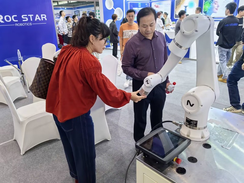 活动当日,师生们满怀期待踏入会展中心。在智能机器人展区,40余家企业的创新成果集中亮相,构成一幅“人机共融”的未来画卷。学院师生被种类繁多、功能各异的机器人深深吸引,纷纷驻足围观、热烈讨论。展区内,工业制造机器人区域与生活服务人形机器人区域形成鲜明对比又相互映衬,从工业园区的高效生产到生活社区的贴心服务,智能机器人在不同场景的广泛应用,让师生们直观领略到“软硬结合”产业发展新趋势,对智能机器人技术在未来社会的变革力量有了更深刻的理解。参观过程中,同学们认真聆听讲解,积极与现场工作人员互动交流,不时记录关键信息。老师们则抓住机会,结合展品与实际教学内容,为同学们答疑解惑,引导大家深入思考专业知识在实际生产中的应用。