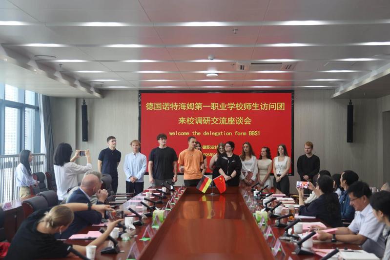 本网讯(外国语学院 团委)9月22日,德国诺特海姆第一职业学校师生交流访问团一行17人来校交流访问。学校行政主要负责人盛鹏热情接待了客人,并召开了座谈会,办公室、宣传部、学生处、教务处、团委、外国语学院等部门和二级学院负责人参加会议。校领导张智清主持会议。