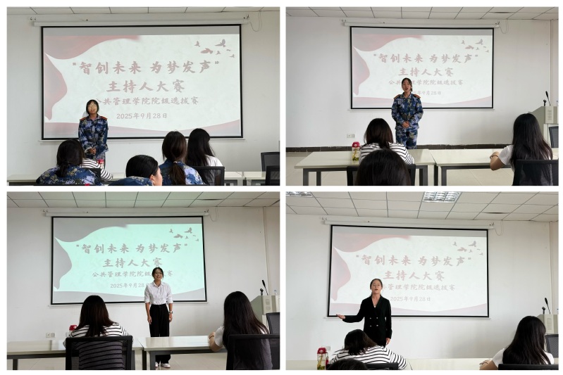 为进一步丰富校园文化生活,搭建学生展示自我、提升综合素养的平台,挖掘兼具语言表达能力与临场应变能力的主持人才,9月28日,公共管理学院在红薪书院成功举办“智创未来 为梦发声”大学生主持人大赛院内选拔赛。