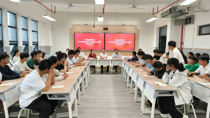 本网讯(智能制造学院)为倾听新生心声、解答成长困惑,助力新生更快适应大学生活,明确发展方向,9月30日,学校召开2025级智能制造工程技术专业新生座谈会。学校行政主要负责人、智能制造工程技术专业名誉班主任盛鹏,智能制造学院党政负责人、辅导员与新生代表齐聚一堂,共话成长、畅谈未来。