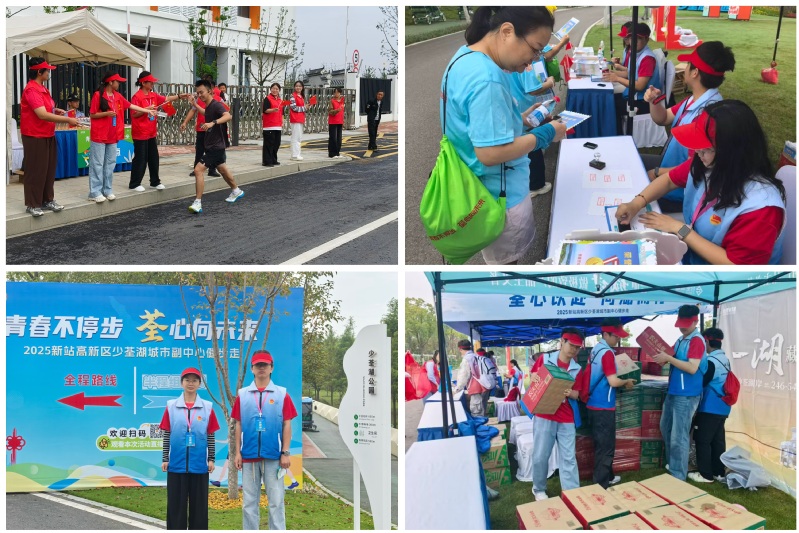 本网讯(团委)健康徒步迎国庆,凝心聚力踏征程。10月1日,由新站高新区管委会主办的“青春不停步 荃心向未来”2025新站高新区少荃湖城市副中心健步走活动在少荃湖公园举行。学校党委负责人李方泽出席活动,并与安徽省总工会领导、合肥市领导、新站区领导共同为活动鸣枪发令。学校团委积极响应号召,招募150名志愿者,担任此次活动的志愿服务工作。