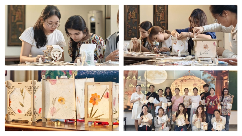 10月8日,学院在安徽文化实践教学基地举办花草纸灯DIY活动,近20名留校学生积极参与。同学们亲手制作出一盏盏融合自然之美与手工之韵的纸灯。这不仅是一次手工艺体验,更是一堂生动的美育实践课。活动不仅锻炼了学生的动手能力,更让他们在实践过程中领略到“纸间有花,灯下有画”的中式美学意境,加深了对非遗文化与中秋节俗的理解与认同。