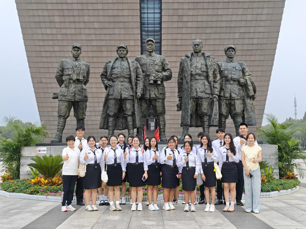 国庆期间,为让国际学子深度感悟中国革命精神与科技创新魅力,10月5日,现代商务学院院长杜淑琳、组织员范大凤和泰国班辅导员带领泰国留学生一行20余人,先后参观了渡江战役纪念馆和安徽科技馆,开启一场“红色铸魂+科技赋能”的沉浸式研学之旅。
