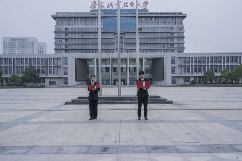 升旗礼毕,星火朗诵协会带来朗诵《九月旗红,技绘青春》,朗诵者满含深情,话语铿锵,表达出安职大学子以严谨态度深耕课堂,以专注精神打磨技能,在探索与积累中收获成长、绽放光芒的态度与决心。