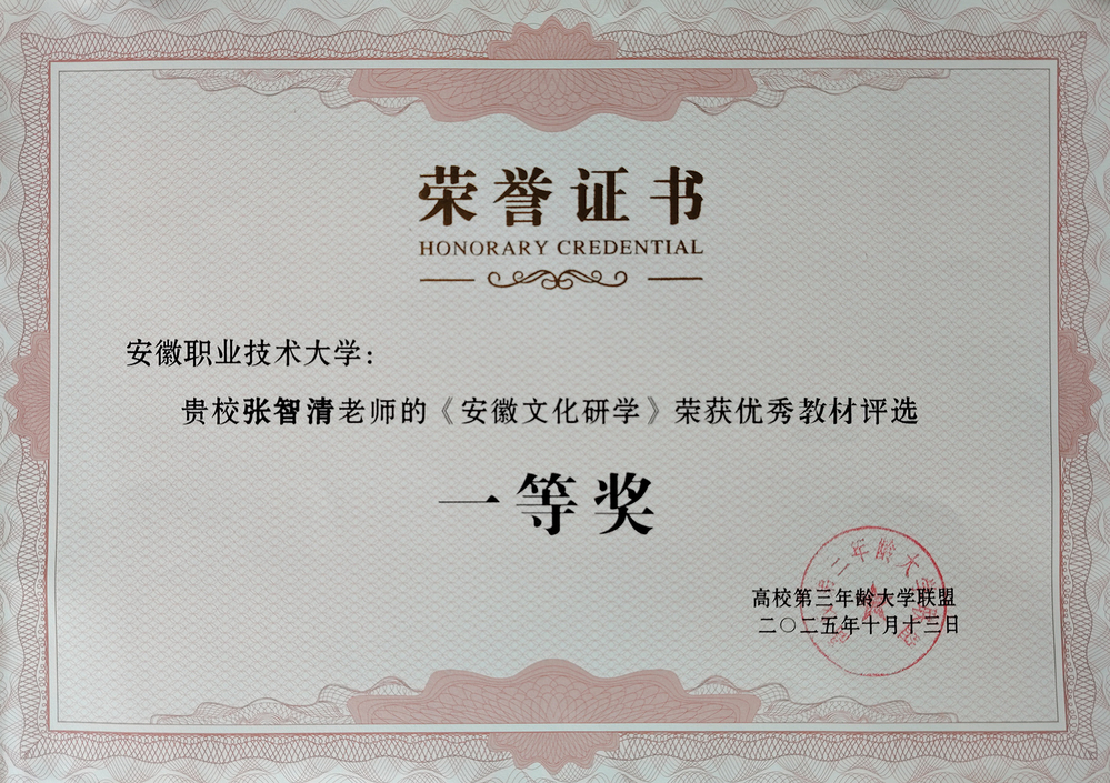 此次年会一项重要内容为联盟两年一度的优秀教材评选。我校选送了由安徽职业技术大学老年大学教研团队编写的《安徽文化研学》,团队充分考量老年学员的学习特点,采用图文并茂的呈现方式与通俗生动的语言表达,既保证了文化内涵的深度,又兼顾了教学实践的实用性,具有鲜明的地域特点与与创新的教学设计,评比现场还播放了精心制作的教材展示视频。《安徽文化研学》教材得到了评审专家们的高度认可,喜获优秀教材评选一等奖。